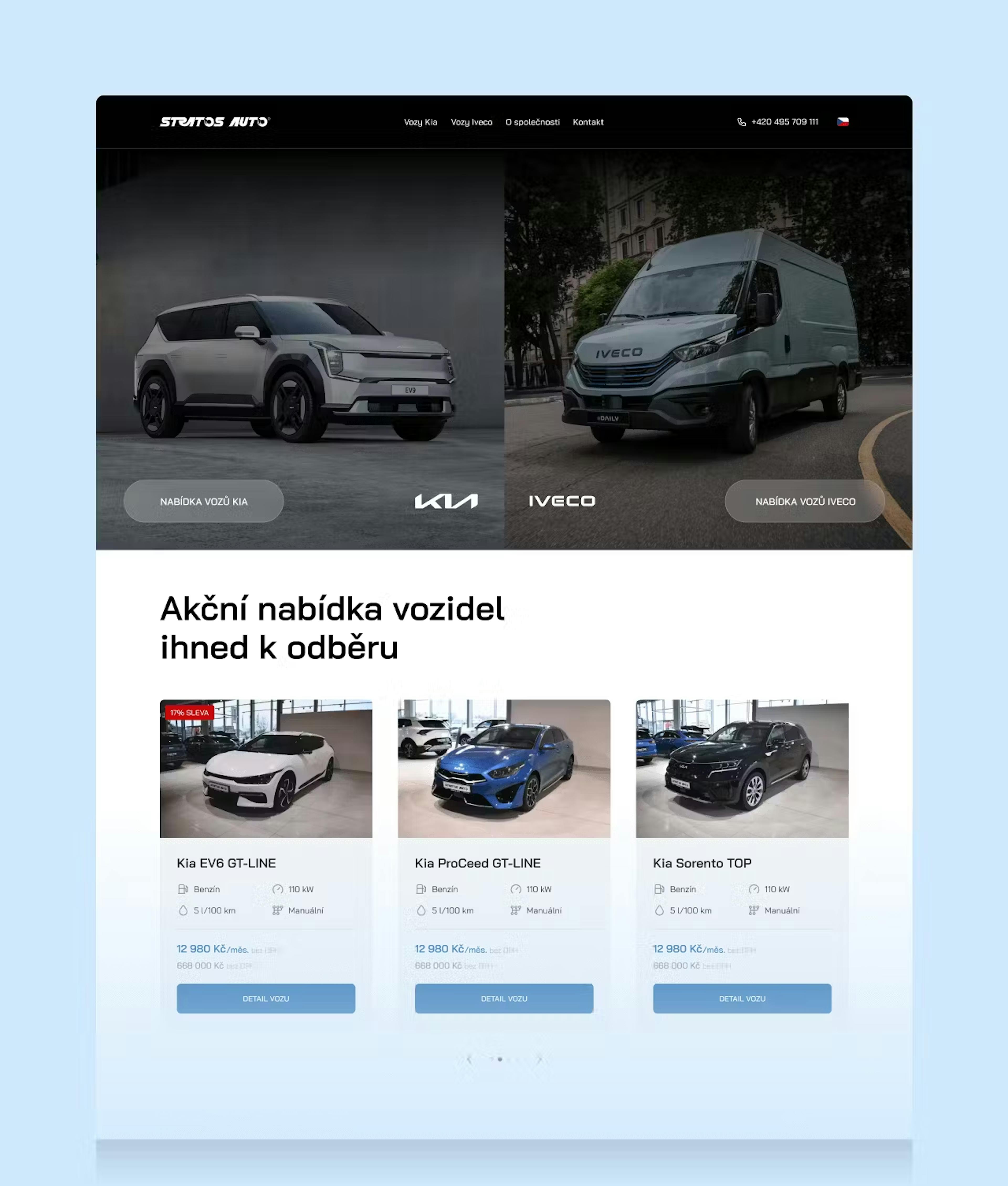 Stratos Auto, a leading Czech automotive dealer for Kia and Iveco, needed a modern digital platform to unify its online presence and improve customer experience. We delivered a user-friendly website that merged two separate brand sites into one, with deep integrations into business systems for seamless operations.